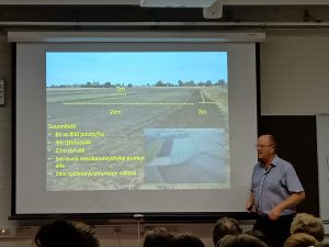 Luomuviljelijä Stephen Briggs kertoi kokemuksistaan peltometsäviljelyn parissa Isossa-Britanniassa. Briggs viljelee siellä 250 hehtaarin luomutilaa, josta 52 ha on peltometsäviljelyä (hedelmäpuita yhdessä nurmen ja viljan, mm. puhdaskauran kanssa).