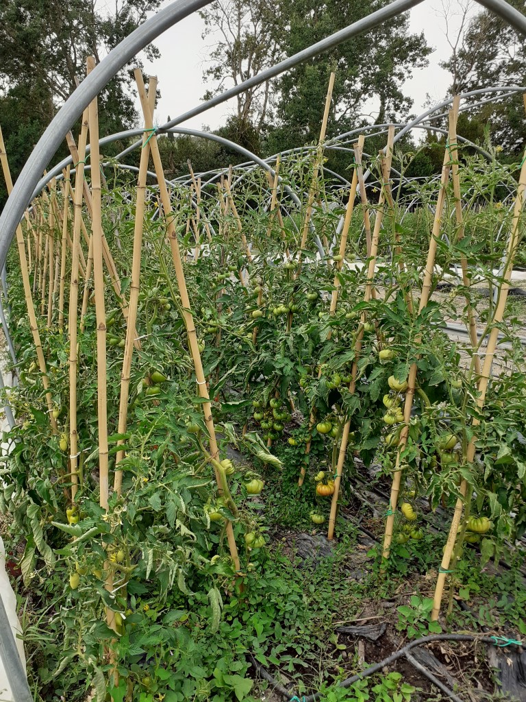 Viljelyssä 4,5 ha, josta 1 ha vihanneksia, tomaattia, kesäkurpitsaa ym.